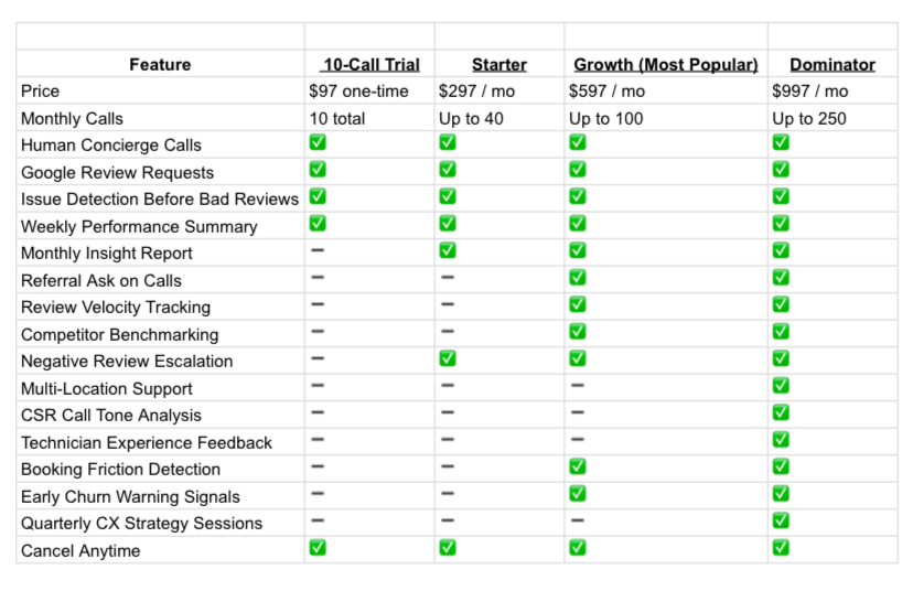 We personally call your customers to ask how their experience was and — if positive — request a Google review.